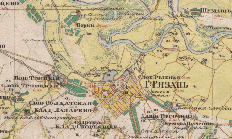 Через Рязань и около нее протекали Трубеж, Павловка, Плетенка, Лыбедь, Дунайчик (в нынешнем Лесопарке), Поскакуха (около Голенчина), Панферовка (у Кального), безымянный ручей у Астраханского тракта.